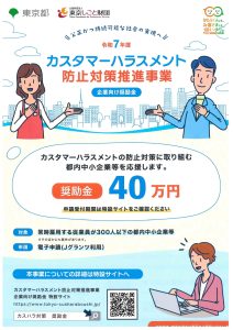 *東京しごと財団からのカスタマーハラスメント防止対策の企業向け奨励金のご案内
