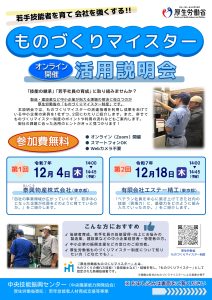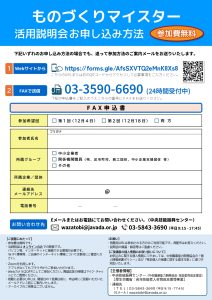 【「ものづくりマイスター」活用説明会(オンライン)のご案内】