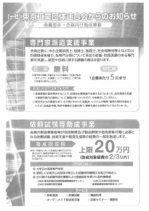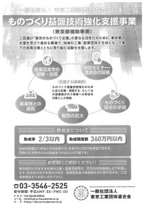 news 工和会協同組合からのおしらせ「助成金」 Posted 2025年12月11日2025年12月18日 s2ZEjDeC 工和会協同組合会員 各位 この度、「東京工業団体連合会」及び「大田区」それぞれより 助成金の案内がきました 添付ご確認くださいますようお願い申し上げます
